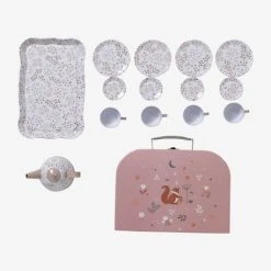 Set de thé en métal, mallette en carton et métal