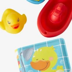 - Contient 1 livre, 1 canard et 4 bateaux colorés