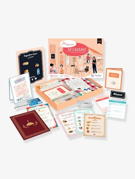 Avec le coffret Si j’Ă©tais Chef, c’est plus de 30 accessoires : carte et menus, guide du chef, nappe, serviettes, carnet de commandes, stickers, euros, carnet de chèques…L’enfant recrĂ©e à la maison l’ambiance d’un vĂ©ritable restaurant, s’exprime, calcule, et propose une cuisine variĂ©e digne d’un grand chef. Avec les photos des menus, il est incitĂ© Ă Â inventer ses petits plats en pâte Ă modeler. Un jeu pour s’imaginer chef, serveur ou client du restaurant.
