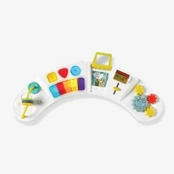 Le siège de découverte possède un plateau avec des jeux amovibles dont un piano lumineux intégrant 20 musiques, idéal pour stimuler les sens de bébé