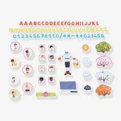 - Inclus : 1 ardoise, 1 chiffonnette, 1 feutre effaçable, des chiffres et des lettres magnétiques