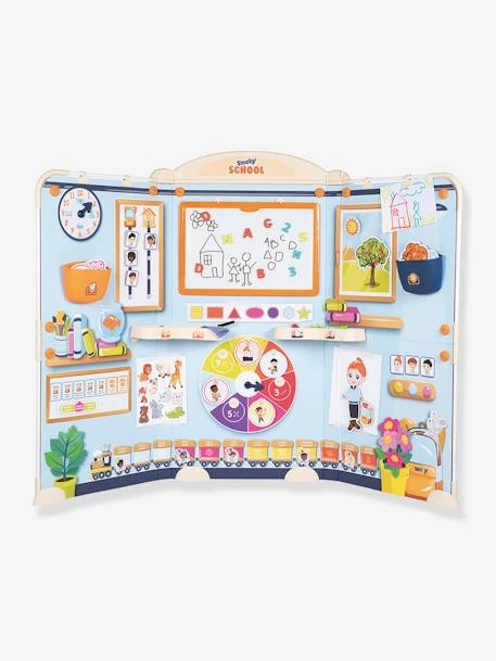 Ils pourront retrouver de nombreuses caractĂ©ristiques prĂ©sentes dans les salles de classe : ardoise (blanche magnĂ©tique ou surface craie), horloge pour indiquer et apprendre l’heure, cartes personnalisables pour Ă©tablir la liste des Ă©lèves prĂ©sents et absents, frise pour se repĂ©rer dans l’espace, roue pour apprendre les chiffres/les activitĂ©s journalières/les couleurs, train des anniversaires, arbre Ă mĂ©tĂ©o, cartes pour apprendre les parties du corps, …