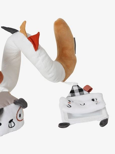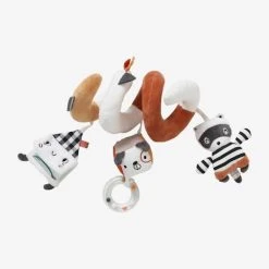 - Spirale avec 3 jouets suspendus : 1 maisonnette avec miroir cachĂ©, 1 cube avec anneau Ă billes et 1 raton Ă clochetteÂ