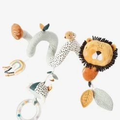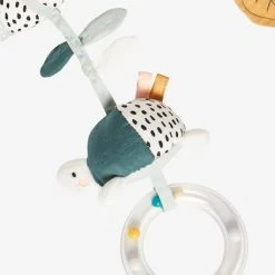 - Spirale avec 3 jouets : une feuille, une tortue hochet à billes, un arc-en-ciel avec rubans et grelot