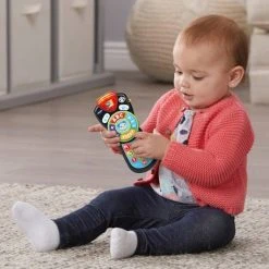 Une super télécommande pour imiter les grands ! Skip, le petit chien, interagit avec Bébé et l’accompagne dans ses découvertes de l’alphabet en chanson et des nombres de 1 à 10. Comme une vraie télécommande, chaque nombre correspond à une chaîne : dessins animés, chaîne de cuisine, de sport… Un bouton Musique déclenche des mélodies entraînantes et Skip informe l’enfant sur la météo du jour grâce au bouton Météo.