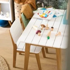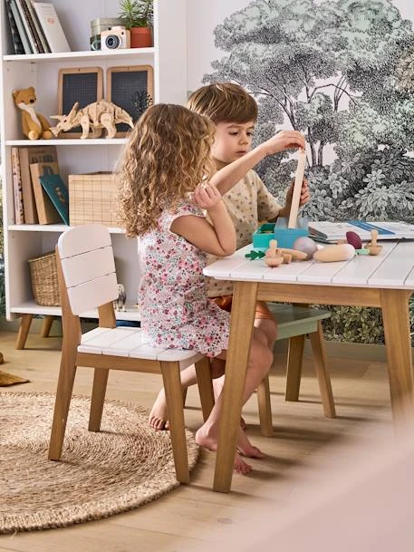 Utilisable en intĂ©rieur et en extĂ©rieur, cette belle table en acacia s’accorde avec les chaises maternelle Tropicool en vente sur notre site.