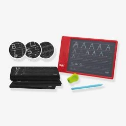 Une tablette avec Ă©cran LCD pour apprendre Ă Ă©crire les lettres de l’alphabet en majuscule, en minuscules cursive, les chiffres de 0 Ă 9 mais Ă©galement apprendre Ă tracer les lignes, courbes et droites ! L’enfant place une fiche sous la tablette et suit les tracĂ©s de chaque fiche pour s’entraĂ®ner. Pour effacer, il suffit d’appuyer sur le bouton ! Pour Ă©crire, il suffit d’utiliser le stylet comme un stylo. L’enfant peut ajouter le guide qui lui apprendra Ă bien placer ses doigts sur le stylo. Le guide peut ĂŞtre Ă©galement utilisĂ© sur un stylo de la maison ! La tablette peut Ă©galement ĂŞtre utilisĂ©e pour dessiner et mĂŞme pour reproduire des dessins grâce Ă sa transparence.Â