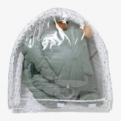 - Jouets sur le tapis : 1 éléphant en velours avec boîte à musique, 1 anneau de dentition, 1 miroir, 1 anneau à billes, des rubans et 2 feuilles en coton
