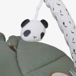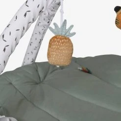 - Jouets suspendus amovibles : 1 tigre + 1 panda avec clochettes. 1 ananas en velours crissant