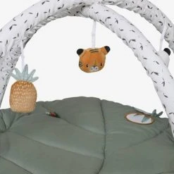 A la découverte des merveilles de la jungle sur ce chouette tapis d’éveil ! Des jouets suspendus à l’arche pour jouer sur le dos, des jouets sur le tapis pour jouer sur le ventre, tout a été imaginé pour éveiller ses sens de la plus douce des manières !