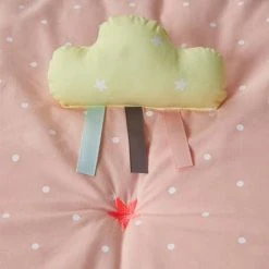 – 1 nuage appliqué avec “pouet-pouet” à l’intérieur et 3 rubans colorés