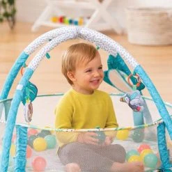 Les bébés adoreront cette aire de jeu et parc balle évolutive 3 en 1. Le tapis d’activité se transforme en parc à balle, idéal quand bébé grandit et se tient assis. Lorsque le divertissement est terminé, rangez les balles colorées incluses dans le sac en filet. 3 modes en 1 : jeu aérien, jeu assis, parc à balles.
