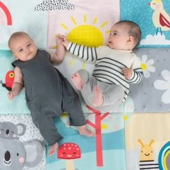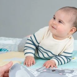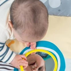 Un grand tapis d’éveil sans arche pour que bébé puisse jouer, s’allonger, s’asseoir et se retourner en toute sécurité ! De nombreuses activités: anneau de dentition, miroir détachable, anneaux en plastique et formes bruissantes.