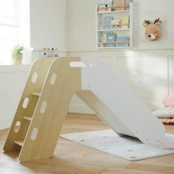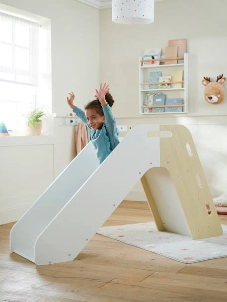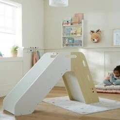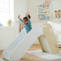 Et zioup ! Une petite glissade pour bébé sur notre toboggan en bois ! En plus d’être joli, il est aussi ingénieux ! Il possède des poignées tout le long de l’escalier, pour aider les petites mains à s’agripper. Placez l’arrivée du toboggan dans une piscine à balles… bonheur assuré !
