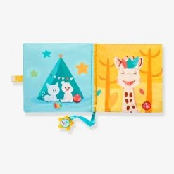 Un livre d’éveil maxi format avec 8 pages Ă l’effigie de Sophie la girafe et ses amis pour se raconter plein d’histoires ! Rigolo, bĂ©bĂ© passe l’Ă©toile en tissu sur chaque image et dĂ©couvre des mĂ©lodies et des sons diffĂ©rents.