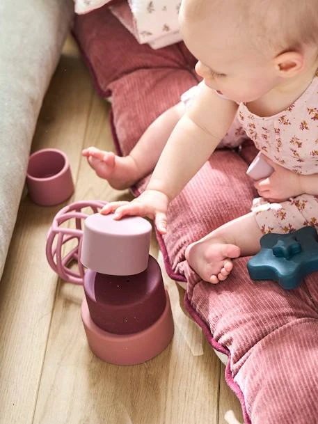 5 pièces en silicone à empiler pour former une pyramide aux 5 nuances de roses ! Tendance et idéal pour les enfants, le silicone est doux, se mâchouille sans problème et peut aussi être utilisé dans le bain.
