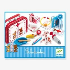 La valisette Bobodoudou contient tout ce qu’il faut pour panser, soigner et ausculter tous les doudous de la terre. Elle se compose d’une seringue, d’un carnet de santĂ©, d’un thermomètre, d’un stĂ©thoscope, de pansements… Le chariot idĂ©al pour jouer au mĂ©decin, avec des accessoires super rĂ©alistes ! Â