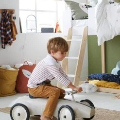 Une superbe voiture de course vintage rĂ©servĂ©e aux pilotes en herbe, qui pourront dĂ©couvrir le monde sur leur première voiture ! Pour avancer, ils devront s’aider de leurs jambes et du volant, ce qui leur apprendra Ă coordonner leurs mouvements.